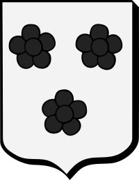 D’argent à trois quintefeuilles de sable, posées deux et une. Casque de trois quarts.
