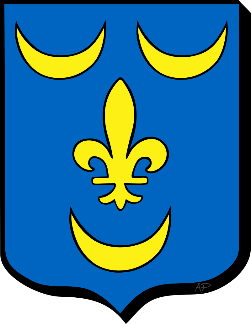 D’azur à une fleur de lis d’or accompagnée de trois croissans du même posés deux en chef et un en pointe.