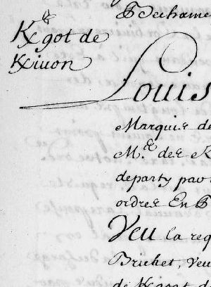 Françoise Brichet, veuve non communière de Bernard de Kergoat de Kerivon, poursuivi pour usurpation de noblesse, est déchargée de cette poursuite par Louis Bechameil, intendant de Bretagne, le premier février 1669 à Rennes.