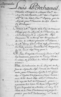 Pierre de la Chambre, sieur de Vauborel, débouté par la chambre de réformation de la noblesse en Bretagne en 1669 et 1671, mais rétabli dans ses qualités par un arrêt du Conseil du roi de septembre 1671, est déchargé par Louis Bechameil, intendant de Bretagne, d’une nouvelle taxe pour usurpation de noblesse, à Rennes le 20 mars 1698.